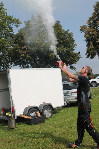 Ich bin immer darauf bedacht, dass Sie zukünftig niemals die 112 wählen müssen. Ich bereite Sie praxisnah auf die wahre Realität vor. Mit echtem Feuer! Ich benutze keine Gasbrandübungstrainer, welche mit einer Gasflamme betrieben werden und somit eben keinen realistischen Rauch erzeugen können! So etwas ist keinesfalls ein praxisnahes Feuerlöscher Training! Durch mein Alleinstellungsmerkmal mit echtem schwarzem Brandrauch zeichnet sich mein besonderes Training speziell aus!